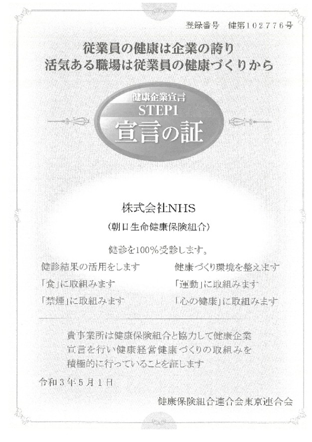 2021年5月(令和3年)、株式会社NHSは、全国健康保険協会から朝日生命健康保険組合に変更となり、これに伴い、